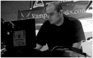 Recording since 1989 he and has released over 70 12" singles and 2 full length albums. In 2001 he had a Number 1 hit on the German Dance Charts (DDC) with the song "One Night in NYC" and in 2004 his album "Manic Panic" went to Number 1 on the German Alternative Chart (DAC). The scope of his music catalog is huge and he has recorded for every major label (Universal, Sony, Koch, etc...) and all the best known techno labels (Tresor, Industrial Strength, Neue Heimat, etc..). The Horrorist has worked with the biggest names in techno including Chris Liebing, The Hacker, Tony Rohr, Marc Acardipane, John Selway, Frankie Bones, Adam X, and more have all remixed and produced with The Horrorist. |